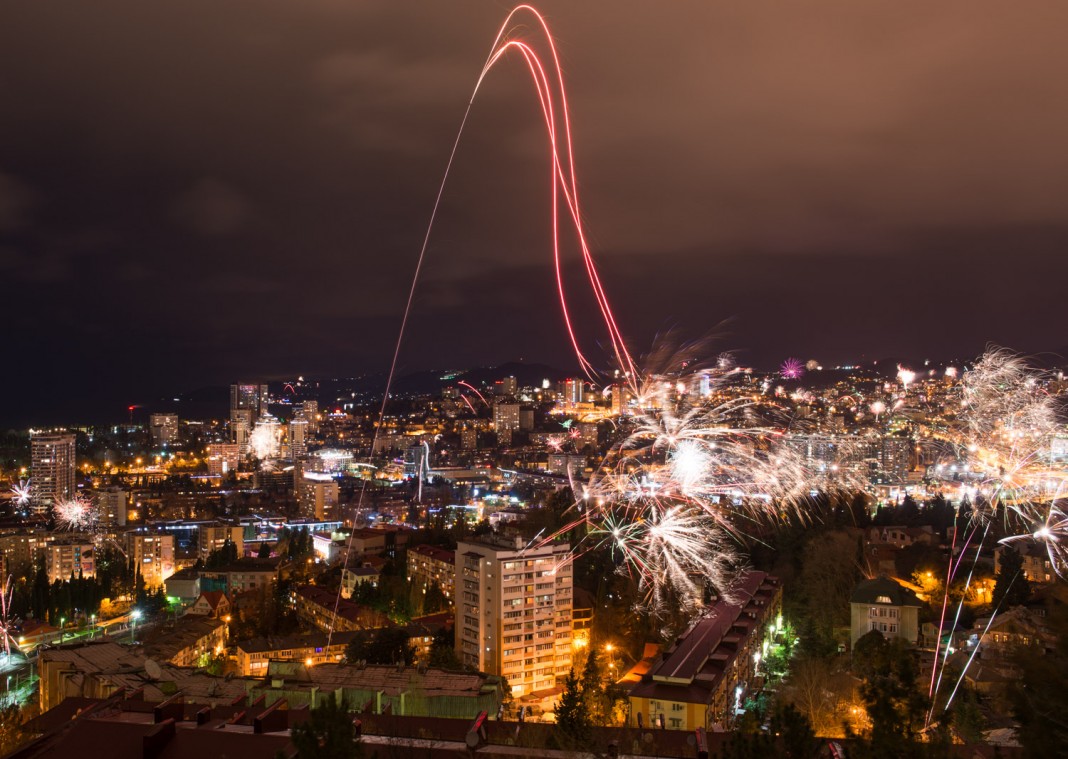 Фото Новогодняя ночь в Сочи Автор Артур Лебедев - 01.01.2016 01:26 0 1128 FacebookTwitterPinterestWhatsApp Первые минуты 2016 года. Вид на Сочи с Видовой башни на улице Альпийской. 1 из 7